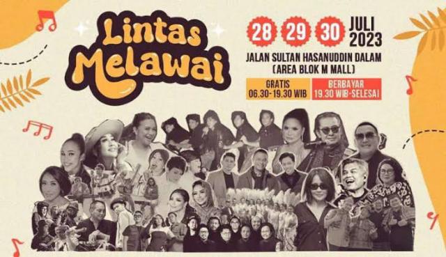 HarianBisnis.id-Pada tanggal 28 Juli – 30 Juli 2023 di Kawasan Blok M,Jakarta Selatan, digelar sebuah festival musik & fashion, yang mengusung tema ‘Lintas Melawai’.