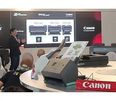 PT Datascrip, authorised distributor Canon di Indonesia mengenalkan 3 Large Format Printer (LFP) terbaru seri GP, yaitu imagePROGRAF GP-526S, GP-546S dan GP-566S yang sudah dilengkapi dengan pigmen tinta LUCIA PRO II 7 warna baru termasuk tinta oranye dan abu-abu yang membuat hasil cetak menjadi lebih menarik dan cerah serta memiliki ketahanan dan lapisan anti gores yang lebih baik. Cocok digunakan untuk mencetak berbagai kebutuhan materi promosi bisnis ataupun percetakan.
